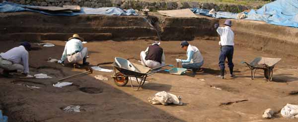 | ツジ遺跡の発掘現場 府中市教育委員会により継続されている。府中市元町の広谷公民館の裏手に当たる。 備後国府の政庁跡にたどり着く日も近そうだ。 |
