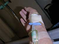 | 2005.12.24 | 土 | 今朝から絶食。あまり辛くない。8時半腹部レントゲン。初めて風呂に入る。気持ちいい。 麻酔科の説明を詳しく受ける。やはり怖い。11時40分点滴開始。