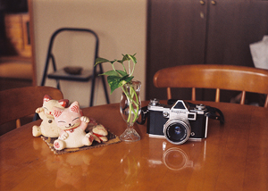 このカメラは巻き戻し機構が無い。いわゆるダブルマガジン方式で、巻き取り用のマガジンに巻き取っていく。キャノン用の古いマガジンを流用してみたら、うまく入った。これも新しい経験である。実際に撮影してみると、左のノブで巻き上げるというのがどうも馴染めない。チェコの人は左利きが多かったのであろうか。