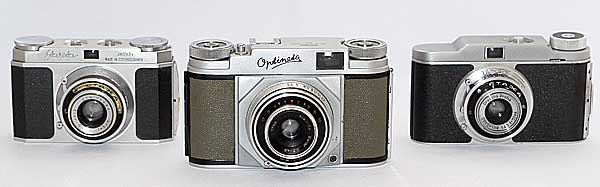 写真の左は、1949年Druopta社から発売されたVEGA 2で、シャッターはエタレッタと同じETAXA、レンズはDRUOPTAR 50mm F4.5。右は1957年のVEGA 3でシャッターはChrontax、レンズはETAR 50mm F3.5になっている。ファインダーが少し大きくなったのと、アクセサリーシューがついたことが改良点だろうか。いずれもマガジンに巻き取っていく方式で、巻き戻し機構は省略されている。