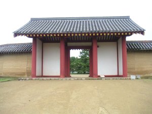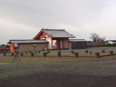 推定できる。東門と南門は朱塗りの柱に白壁で、復元されている。