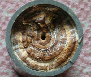 温泉のパイプ 雄山閣の温泉を引いているパイプ。 わずか3ヶ月でこのように詰まってしまう。 源泉そのままに湯槽に引くには、かなり の苦労があるようだ。 |