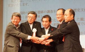 | 国府サミットの発展を誓う市長達 |