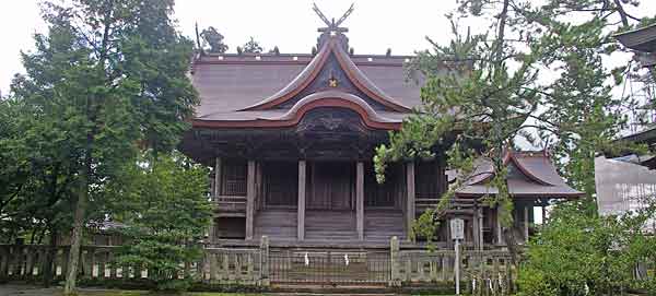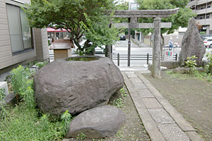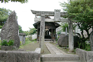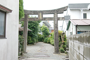 | 祭神は伊奘冉神(いざなみのかみ)ほか五柱。 なぜかこの境内に国分寺の礎石がドーンと置かれている。右奥の猿田彦の碑の台石も国分寺の礎石らしい。 |