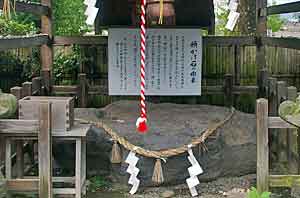 | 七重塔心礎 なぜか近くの熊野神社境内にある。 巨大な礎石で長径2.6M、短径2.4M。高さ1.8M |