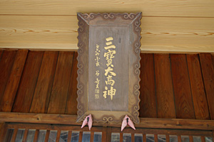 三宝大高神の扁額 拝殿に掲げられた扁額 由緒を聞きたかったが、留守であった。 |