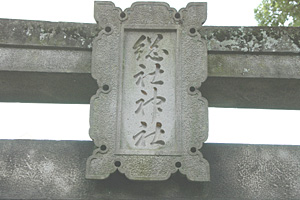 総社神社の額 石の鳥居に掲げられた総社神社の額。 祭神は建速須佐之男命と荒御霊とある。 |