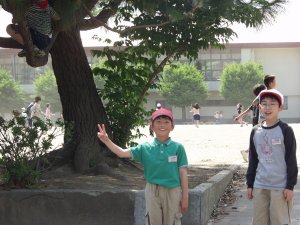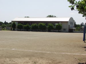| 石岡小学校の体育館と校庭 | この下に常陸の国庁があるんだぞ |