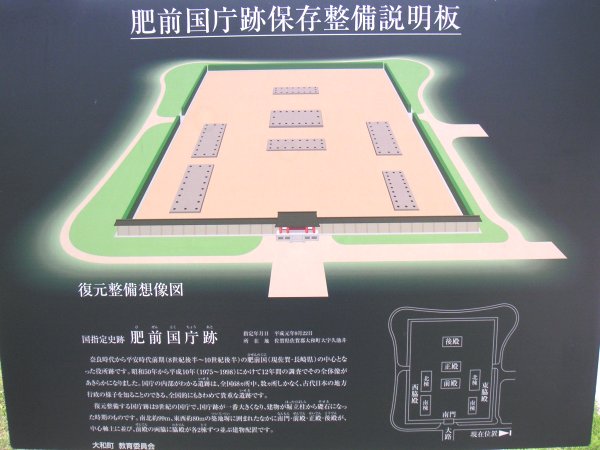 | 肥前国庁跡の標識 非常に立派で、びっくりした。 史跡公園の整備が進んでいて、その公園入口を示す。 |