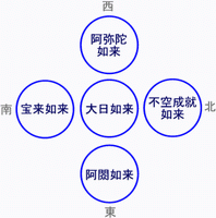 密教の五智如来 不空成就如来を釈迦如来 阿しゅく如来を薬師如来に 擬している |