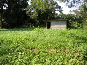 | 発掘調査地(2003.09.05取材) 上の写真から6年経って、再び訪れた。 夏草が生い茂って、皆目わからない。 |