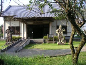 | 木喰上人は享保3年(1718)甲斐の国の生まれで、日本各地を行脚し自ら彫った仏像を各地に残した。天明8年(1788)日向国分寺にいたり、地元住民に求められるまま、国分寺住職として寛政9年(1797)まで9年間日向国分寺にとどまり、五体の如来像を残した。一丈八尺の五智如来が並ぶ様は壮観である。明治の廃仏毀釈で、この如来像も危機に瀕したが、民家に隠され奇跡的に残った。 この五智館は平成8年(1996)地元の熱意で、再建された。 五智如来は、もともと密教の金剛頂経に説かれた五つの知恵を現す如来とされるが、日向国分寺のそれは、阿しゅく如来を薬師如来に、不空成就如来を釈迦如来に擬している。 |