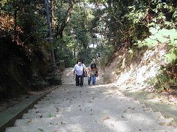 この階段の急なこと、途中で蛇が横切った。おまけに手すりは蜘蛛の巣だらけ。