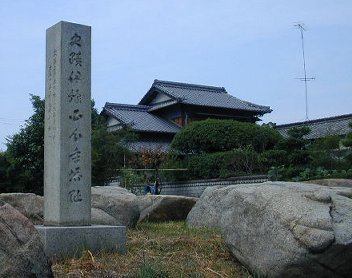民家の中に埋もれてしまいそうだが、心礎を含む12個の礎石がある。