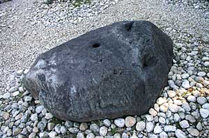 塔の礎石 肝心の芯礎は、明治になって小松宮の 東京の屋敷に運ばれたが、その後行方不明。 |