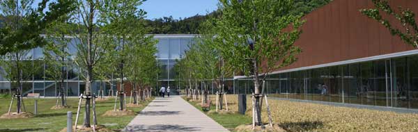 | 荒神谷博物館 山間の専用駐車場からしばらく歩くと、この博物館に出会う。荒神谷遺跡の発掘の様子から、出土品の展示まで、視聴覚等を使って行き届いた説明がなされる。実物大の銅剣を持ち上げてみた。ものすごい重さだ。とても戦いには使えないと思った。 |