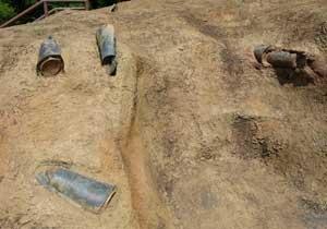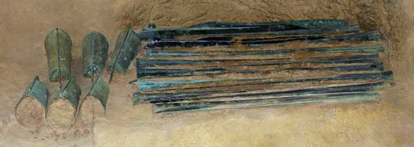 | 358本の銅剣 このような状態で埋まっていた。いったい誰が何のために埋めたのだろうか。 |