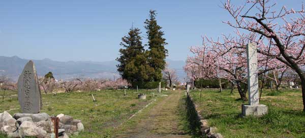 | 甲斐国は現在の山梨県である。4月上旬は桜と桃が満開になり、雪をかぶった南アルプスとともに、この山峡の国を鮮やかに彩る。まさに桃源郷とは、こういう風景をいうのであろう。ちなみに甲斐国は、律令時代以前は峡(カイ)之国と呼ばれていたという。 甲斐国は内陸の国でありながら、律令時代には東海道に属していた。駿河から富士川沿いに,甲斐国府まで支道が通じていたのだ。 |