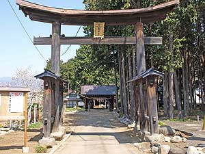 | 甲斐奈神社の鳥居 一宮町の甲斐奈神社。 鳥居の上側が大きく反っている。 |