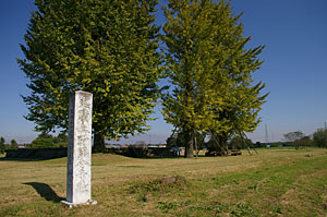 | 国分寺跡の碑と塔の基壇 塔の基壇は1辺が19.2mの正方形。 塔は高さ60.5mの七重塔であった。 |