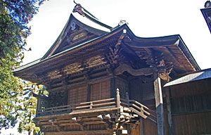 神楽殿 3月15日の春季例祭には太々神楽 が奉納される。 |