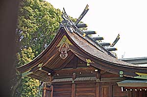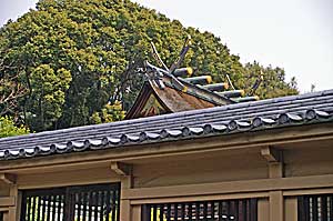 | 本殿 どうしても全体が見えない。 屋根が美しいのでどうしても見たくなる。 |