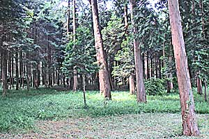 国府遺構出土地 東側の林。国府の西脇殿が発掘された。 |