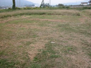 | 御旅神社の南に広がる美濃国庁の発掘現場 第1次(1991)〜第9次(1999) 第3次調査で正殿を検出した。 |