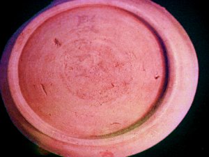 | 正殿跡とされる御旅神社の境内 | 出土した須恵器 駿河麿の墨書が見える。 |