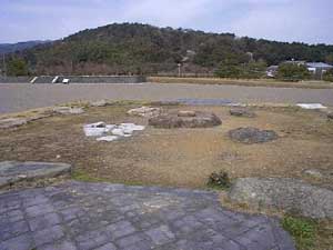 七重の塔の礎石。 向こうに見えるのは金堂趾の基壇。 |