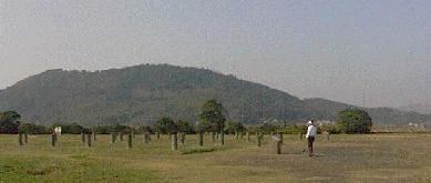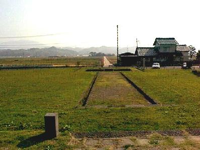 国庁の後方官衙の跡。 後ろは風土記の中で神名樋野 (かんなびぬ)と記された茶臼山。 |