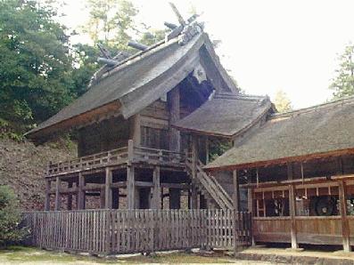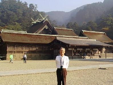 筆者の左が、神様の宿泊所。 十月は全国的に神無月だが ここ出雲だけは、逆に神在月 という。神様が全国から出雲に 集まるからだ。 十月十一日から十八日まで ここにご滞在になるという。 |