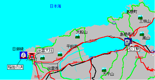 | 出雲国風土記「国引き」 意宇と号(なづ)くる所以は、国引きましし八束水臣津野命、詔りたまいしく、 「八雲立つ出雲国は、狭布(さぬ)の幼国(わかくに)なるかも。初国小さく作らせり。 故、作り縫はな。」と、詔りたまひて、 「たくぶすま志羅紀(しらき)の三埼を、国の余りありやと見れば、国の余りあり。」(..中略.) 河船の毛曽呂毛曽呂(もそろもそろ)に、「国来(くにこ)、国来」と引き来縫える国は、(..中略) 八穂米(やほしね)支豆支(杵築)の御崎なり。(.........中略.........) 「今は、国引き訖(お)えつ。」と、詔りたまひて、意宇の杜に御杖衝き立てて、「意恵(おえ)」と、詔りたまひき。故、意宇と云ふ。 |