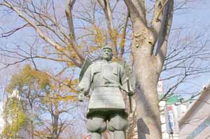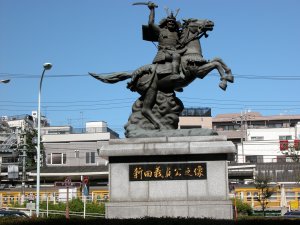 新田義貞像 分倍河原駅前のロータリーに建っている |