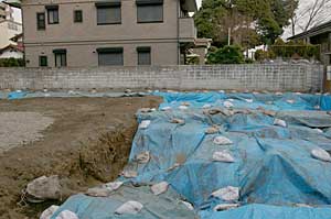 | 発掘現場 大型の掘立柱建物が出土。 府中市が土地を取得した。 |