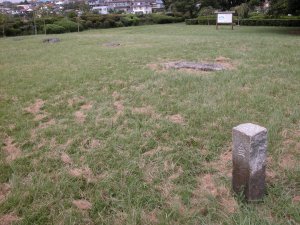| 武蔵国衙跡 大国魂神社の前を通る旧甲州街道に沿って、古代の道路跡が 発掘され、それに面して国庁の北門跡が発見された。北門から 南に中軸線を延ばした先に、大型の掘立柱建物の遺構を発見。 |