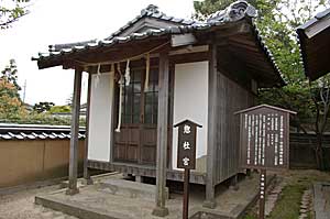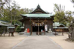 | 長門国惣社は、忌宮神社の南方の民家の密集したところに、ひっそりとある。すぐ近所の人に聞いても知らなかった。当初、現在の毛利屋敷の地に鎮座していたが、のちに忌宮神社に合祀され、さらにこの地に遷されたという。まさに流転の社である。しかし、この辺り一帯を惣社町と称するは、この宮に由来することは間違いない。 |