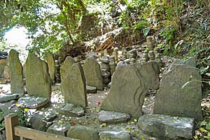 | 平家一門の墓 総大将平知盛、副将能登守教経、従二位尼平時子など壇ノ浦に沈んだ平家一門の墓。 琵琶法師の芳一が夜な夜な召されて、この墓前で平家物語を演じたという。 |