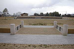 内裏の門の遺構 昭和53年に回廊が発掘され、この地が 近江京の中心部であることが確定した。 |
