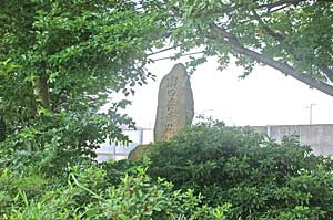 | 近江国分寺跡の碑 青嵐小学校の校舎の北側に立つ。 「分」の字の刀が突き出している。 |