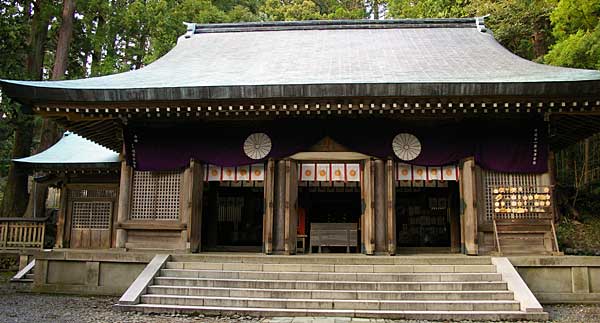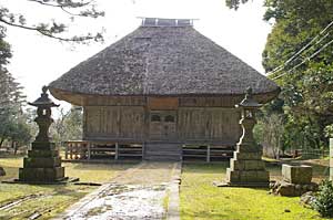 | 拝殿 奥の本殿は宝永6年(1709)、この拝殿は昭和12年(1937)の造営である。総桧造り。 |