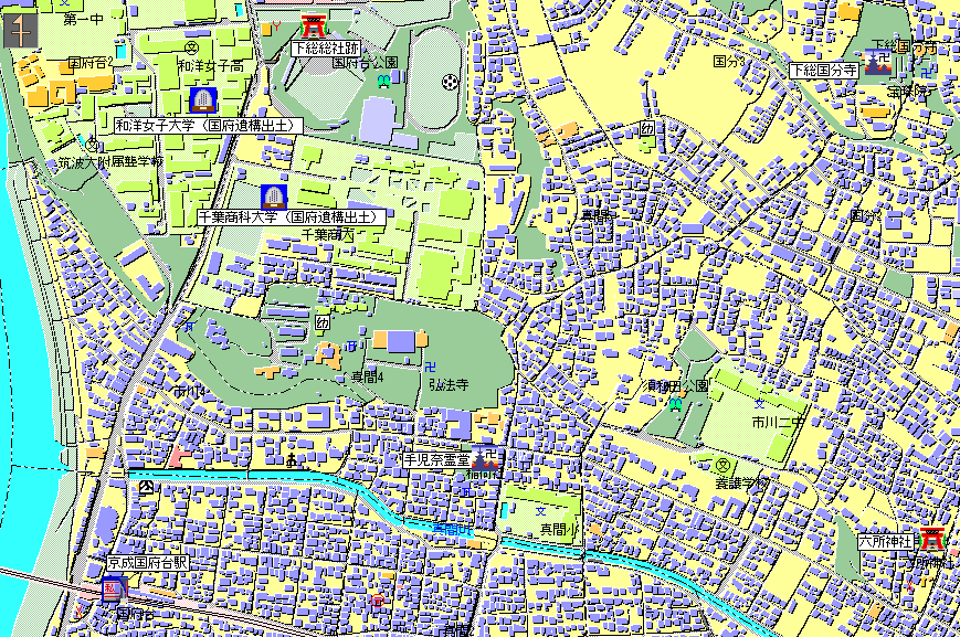 下総国の国庁は、市川市の国府台に置かれた。