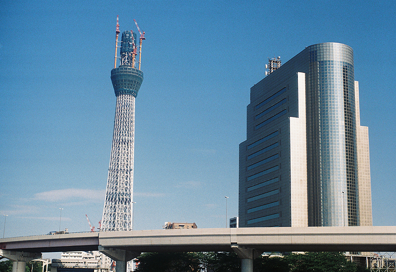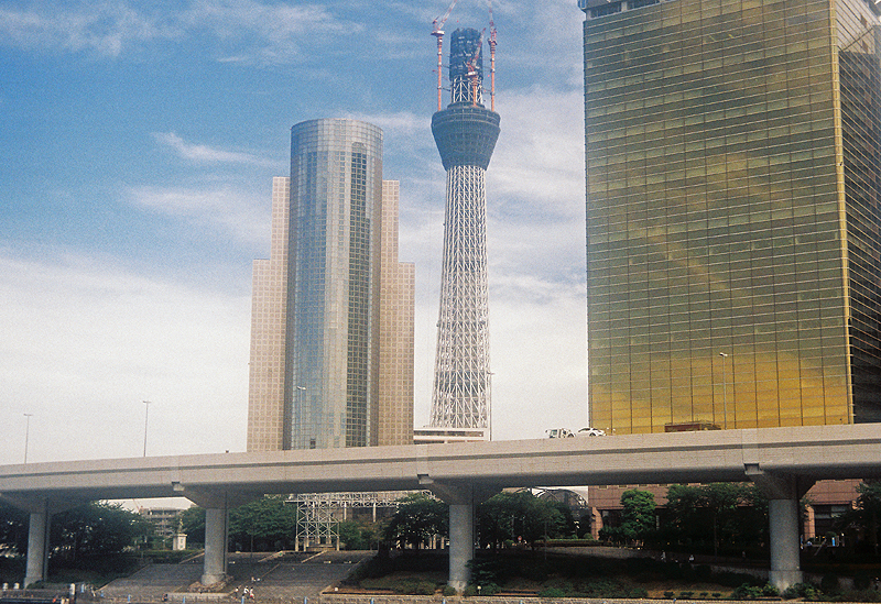 東京スカイツリーの成長を、クラシックカメラで記録した。撮影スポットもいろいろ変化させてみたが、主要ポイントは定点として比較出来るように工夫してある。上段の赤字は高さと撮影した日付、下段の黒字は撮影したカメラとレンズである。