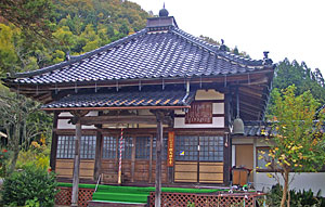 | 本堂 本尊薬師如来像は79Mの寄せ木造り。 平安後期の作風で町の指定文化財。 |