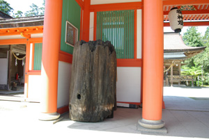 鳥居の木口 河川の改修の際、土中から出土した 当神社の鳥居の木口。平安時代のものとか。 |
