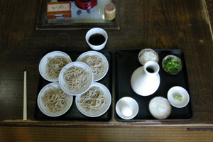 出石そば 信州から出石に転封された仙石氏によって 伝えられた。人口1万人の町に、45軒の そば屋があるという。小皿に盛られて出て くるそばは、腰があって美味い。私は10皿 平らげたが、いくらでも食べられる美味い そばであった。 |