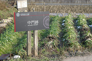 中門跡 中門の跡は大根畑だ。 |