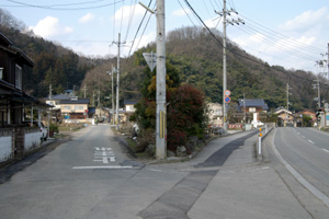 | この二俣に分かれた左の道路に入ると 但馬国分寺跡の遺跡群がある。 |