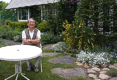 さわやかな朝のガーデンで、ご機嫌な中山常務。