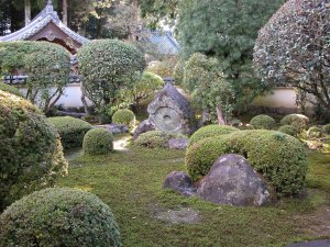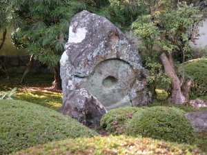| 大書院の庭 古代国分寺の塔の心礎を庭石にしている。 |